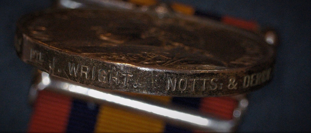 Private Wright is also entitled top the India General Service medal, clasp Punjab Frontier 1897-98 serving with the 2nd Battalion, Derbyshire Regiment, and the Kings South Africa Medal with both clasps, 1st Battalion, Notts & Derby. (Details confirmed from Ancestry.co.uk)