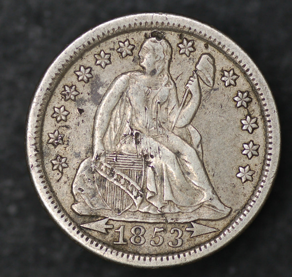 Arrows at date. Pick marks to reverse field, otherwise good VF.