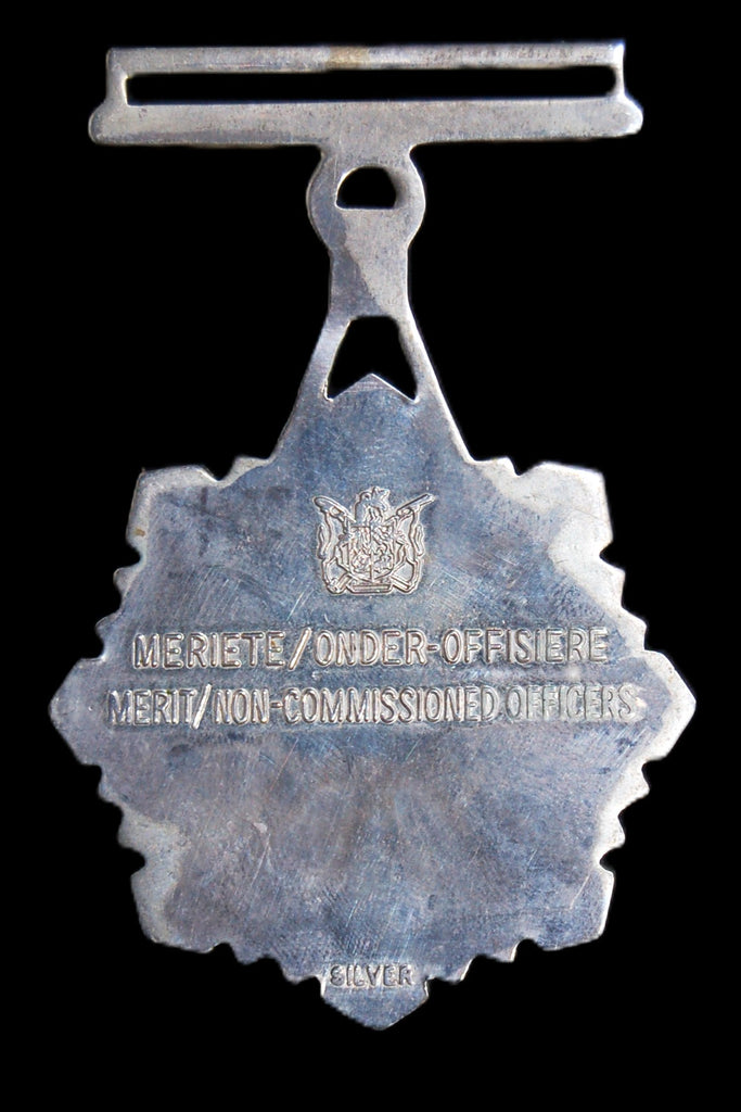 SOUTH AFRICAN PRISONS MEDAL FOR MERIT Instituted in 1980 for non-commissioned officers for merit. Silver. Coat of Arms on reverse.