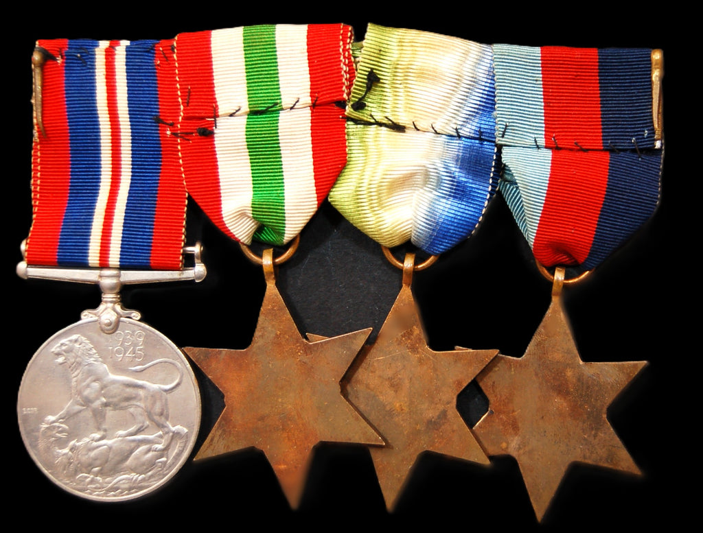 An unattributed group of 4 medals including the 1939-45/Atlantic and Italy stars, and the war medal. The recipient most likely being with the Navy in the Mediterranean at some point.